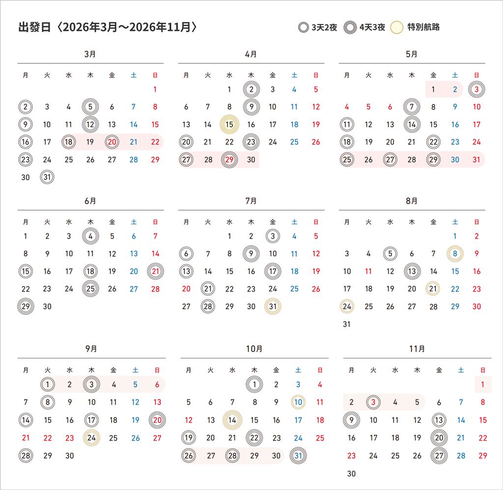 沉靜漂泊旅宿「guntû」 遠離塵囂,沉浸瀨戶內海的寧靜之旅 2017年啟航,僅接待最多36名貴賓的小型豪華客船「guntû 」,三層樓高的客船上圍繞著舒適的木頭清香,船上僅17間客房。 依當日的心情選擇不同餐點,能一望無敵海景的壽司吧檯、開放式露天甲板、交誼廳、兼備三溫暖的大浴場等,能隨心所欲度過的空間就在眼前。 「guntû〈日文:ガンツウ〉」一名,源自瀨戶內海所產小型石蟹在備後地區的方言。 期盼這艘船能長久受到旅客與在地居民的喜愛,並讓人細細品味瀨戶內的傳統、文化與自然之美,因此命名為「guntû」。 guntû 從廣島縣尾道市的母港出航,周遊擁有七百多座島嶼的瀨戶內海靜謐水域。 出航後不停靠其他港口,夜晚下錨後停泊於島灣邊。 無所事事的奢侈,和瀨戶內海的海景融為一體,盡情享受悠閒流逝的時光。 廣島縣 尾道出發 多種行程可供選擇 guntû 自廣島縣尾道市的「Bella Vista Marina 碼頭」出發,航行於瀨戶內海各島嶼之間,帶來充滿航海魅力的體驗。 航線主要分為三種: 一是巡遊瀨戶內海東側、可欣賞廣受歡迎的嚴島的「東迴航線」; 二是環繞西側、遠方可眺望岡山沿岸工業群夜景的「西迴航線」; 三是行經連結本州與四國的瀨戶內島波海道、繞行中央海域的「中央航線」。 2026年3月至11月期間,「3天2夜」或「4天3夜」,多種行程可供選擇。 所有行程皆包含一次自由參加的下船體驗,讓您感受當地獨特的文化。 行程內容會因出發日期不同而有所差異,詳情請參閱官方手冊。〈僅提供日文/英文版本〉 官方手冊 2026年3月~5月出發: 日文 / 英文 2026年6月~11月出發:日文 / 英文 ※ 因本商品為當地行程 (個人自由行),行程中無安排領隊或導遊隨行。 ※ guntû 工作人員僅提供日文及英文對應服務。 參考出發日 ※ 在收到您的詢問後,我們會向 guntû 確認空房狀況。若因客滿而無法受理預訂,敬請見諒。