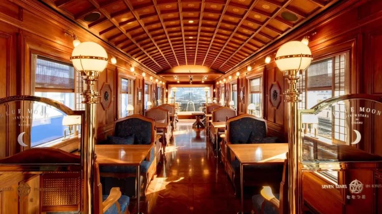 列車介紹 │ 交誼廳・餐廳『藍月 Blue Moon』 配有一大片落地窗讓您能飽覽窗外美景的交誼車廂,中午作為咖啡廳,晚上則搖身一變成酒吧。 現場演奏的鋼琴,搭配著窗外川流不息的美景,在這裡悠閒地度過光陰吧。 ※ 列車內的早、午、晚餐皆於『藍月 Blue Moon』提供。 │ 交誼廳・茶室『木星 Jupiter』 於2022年改裝為設有茶室的交誼廳。 茶室採用日本茶道中的立禮式,因此可以坐在椅子上,無需跪坐。地面也鋪設著宛如茶室一般的榻榻米地墊。 在洋溢日本傳統文化的空間中,細細品嚐七星服務人員的點茶手藝。 ※ 茶室有使用時間限制 (1組約20分鐘),將在行程開始後由七星服務人員公佈。 ※ 交誼廳『木星 Jupiter』提供的其他飲品敬請自助取用。 │ 藝廊商店・KAZ BAR 於2022年改裝為藝廊商店結合酒吧。藝廊商店可以欣賞到九州各地的工藝品,還可購入原創商品。 僅有4個吧台座位的特別空間「KAZ BAR」,由專屬調酒師為您提供以九州產威士忌與烈酒、當季水果調製的各式雞尾酒。 ※「KAZ BAR」需額外付費使用,且設有使用時間限制 (每位25,000日圓, 每組限90分鐘)。無法事先預約,敬請於列車內向七星服務人員洽詢。 ※ 列車內的消費僅可使用信用卡付費,不收現金。 列車客房 「豪華A套房」1間、「豪華B套房」1間、「標準套房」8間客房,共有10間獨立套房。全套房皆設有淋浴間・洗手間。 本商品搭配精緻的「標準套房 (約10㎡)」,和風西洋・新舊融合為設計主軸打造的套房,使用大量木材,套房各處使用傳統工藝品點綴,採用懷舊色系的布料製作沙發。
