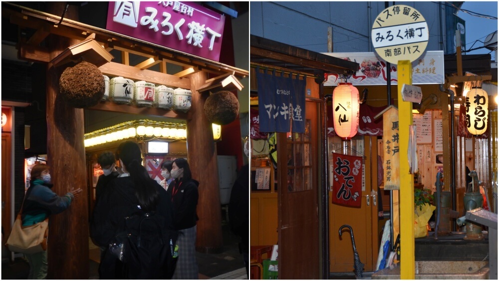 八戶市三日町「みろく橫丁」入口(若住宿於市中心的飯店,將有專人迎接)