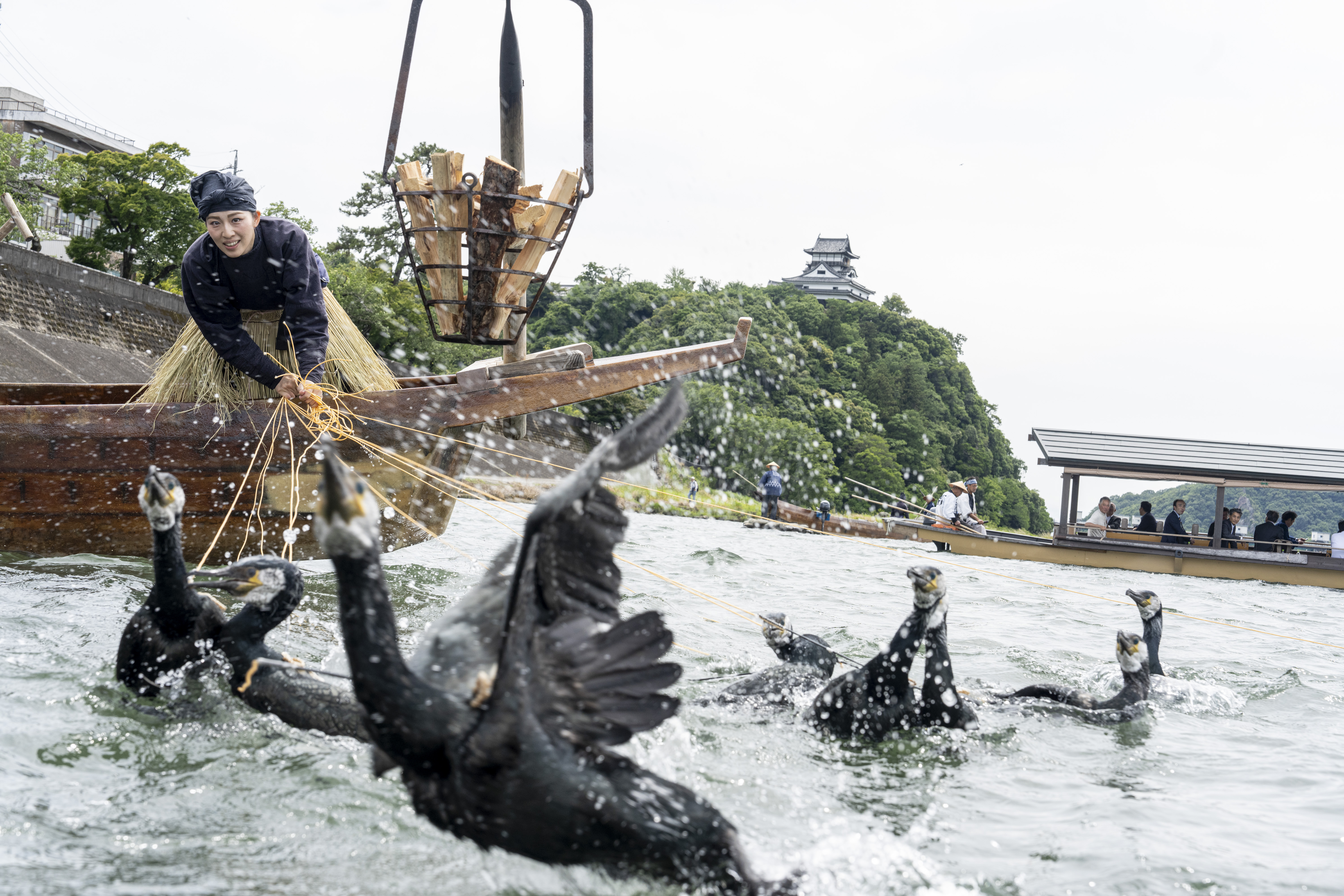 【木曾川鵜飼】季節限定 鵜飼在日本已有超過1300年的歷史,這是利用訓練過的鸕鶿(日文稱「鵜」)來捕魚的古老技術。漁師(稱為「鵜匠」)在捕魚過程中操控鸕鶿潛水捕捉魚類,再將魚取回。 木曽川鵜飼是日本中部非常具有代表性的傳統捕魚活動,,更是一種活的文化遺產,體現人與自然之間的合作關係,也被視為日本傳統工藝與生活方式的象徵。