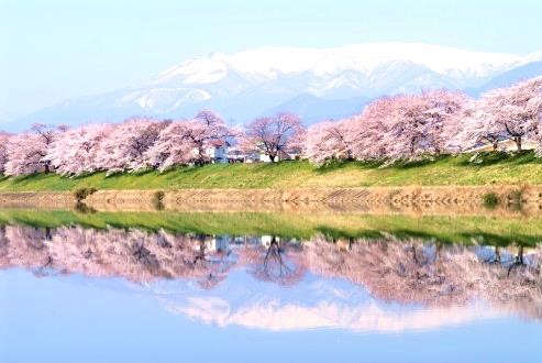 ●【檜木內川堤】此地櫻木的樹齡有80至200年以上的,就多達500株以上,而長堤沿岸約2000公尺的櫻花花海隧道,緩慢地沿著蜿蜒的河展開,就像是櫻花色的雲一樣地蔓延著。與奧羽山脈的殘雪相互輝映,景緻極為迷人。