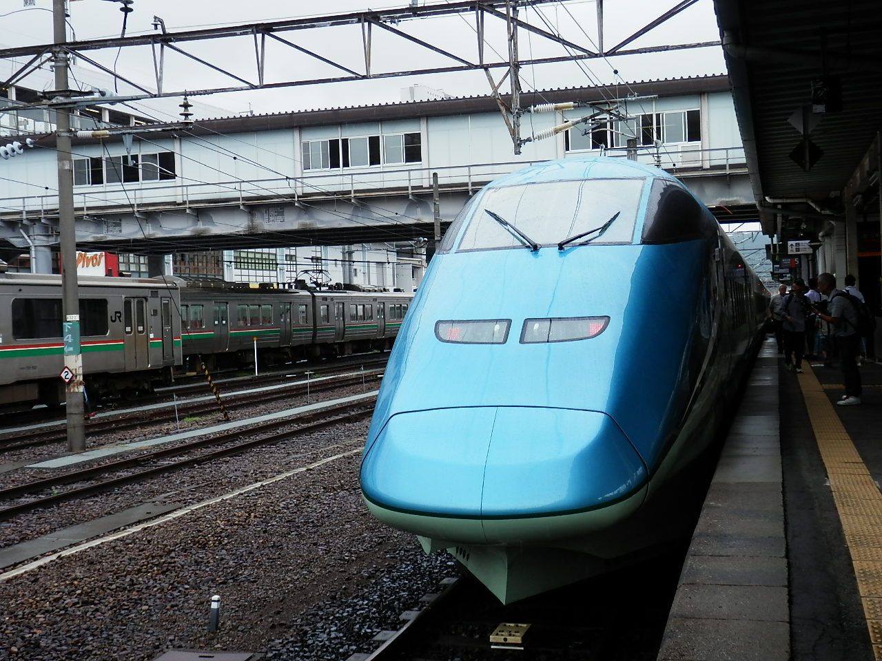 今日的重頭戲之一就是搭乘人氣的足湯列車<とれいゆ>。這是以列車(TRAIN)和法語中的太陽(soleil)所命名的列車。車上設有榻榻米的指定席及售有山形縣地酒及果汁等軟性飲料的吧檯外,最特別的要屬史上首見的列車足湯設施了。邊欣賞車外美景邊泡足湯,享受有如於溫泉鄉散策的渡假氛圍,無疑是此列車最迷人的特色了!